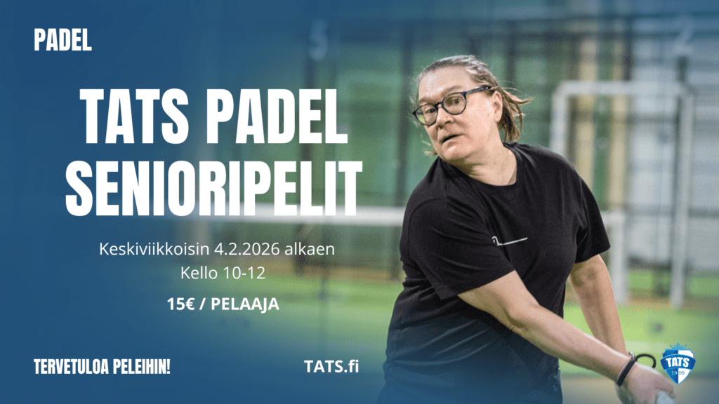 Tampereen Tennisseura (TaTS) järjestää padelin senioripelit Tampereen Tenniskeskuksella alkaen keskiviikosta 4.2. Pelit pelataan joka keskiviikko klo 10.00–12.00.
